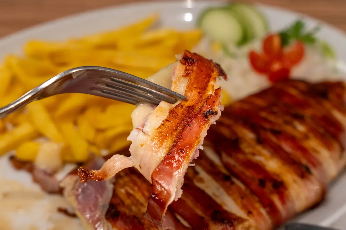 Gefülltes Schweinskarree mit Pommes frites 13,90