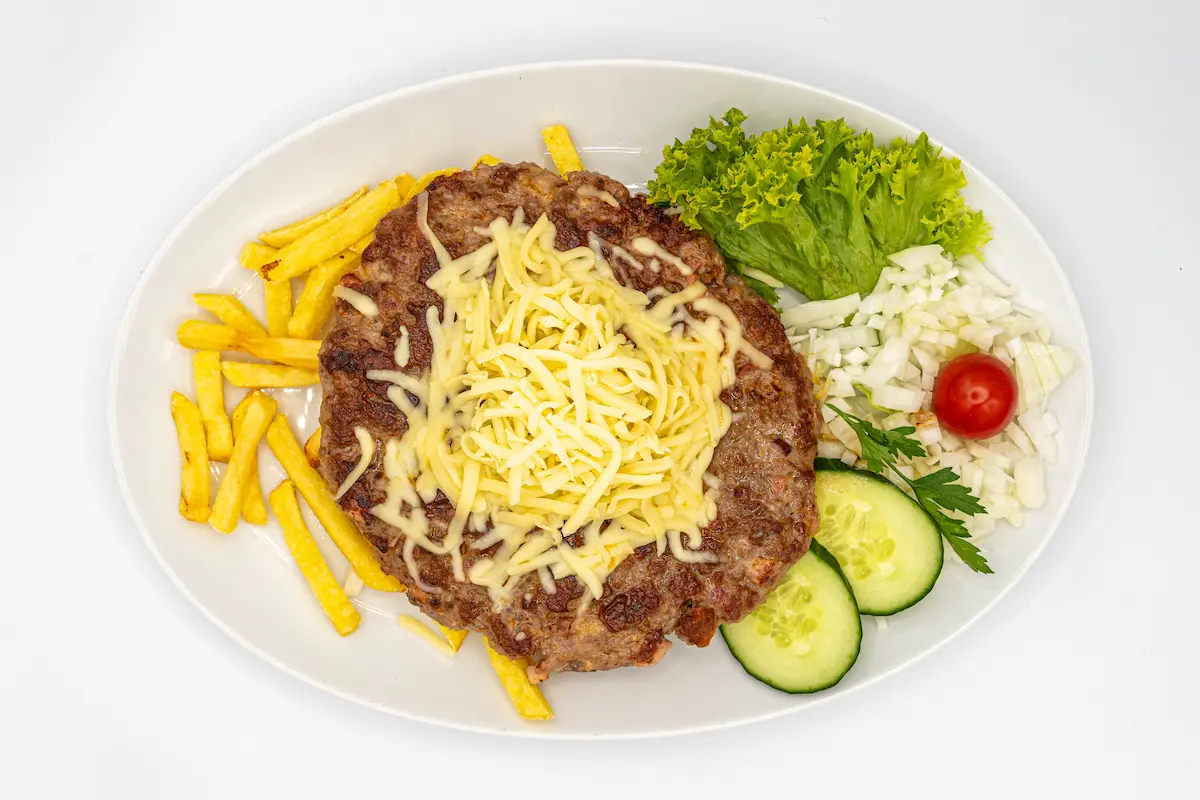 Gefülltes Fleischlaibchen mit Pommes frites 12,90