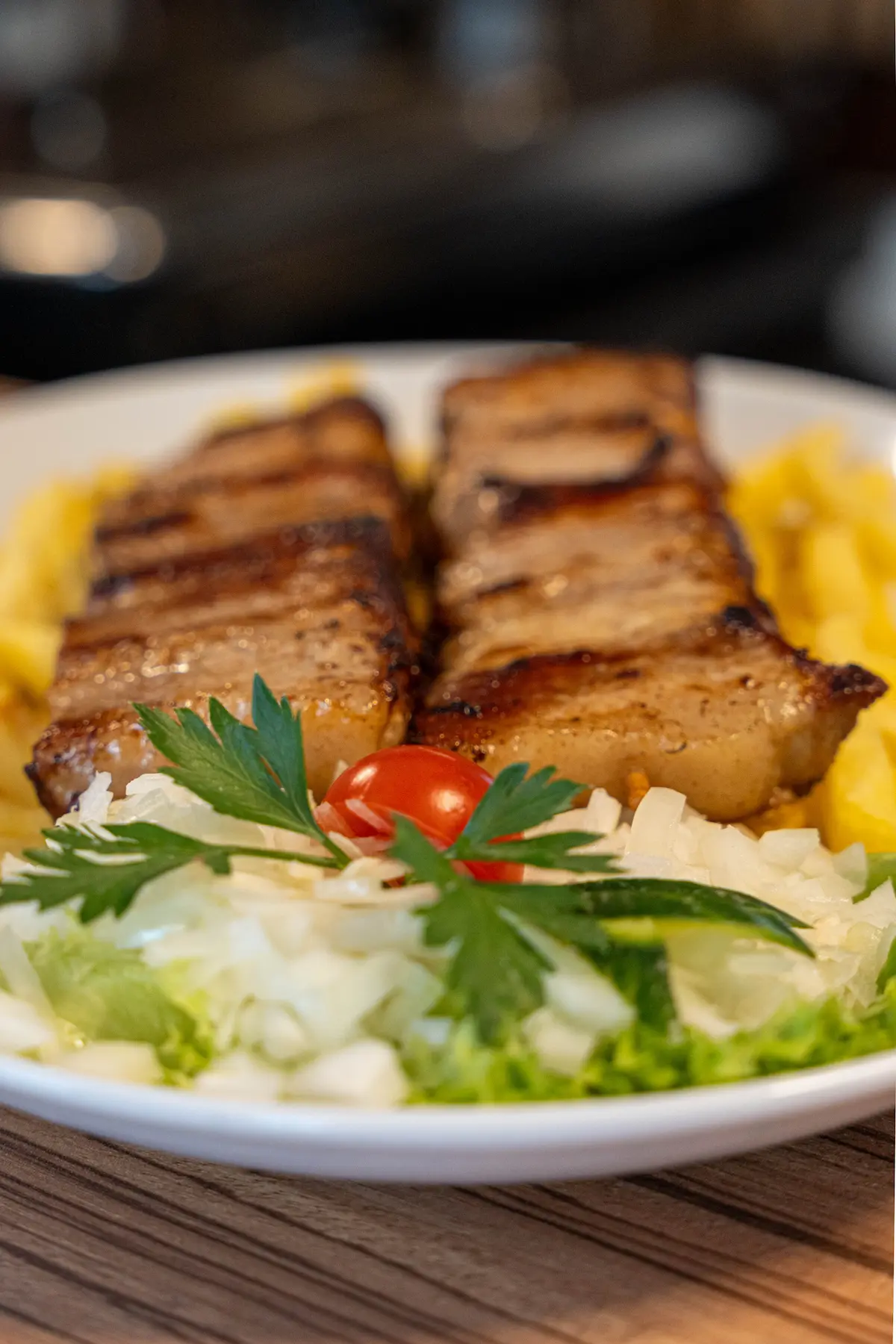 Bauchfleisch mit Pommes frites 9,90/7,40*