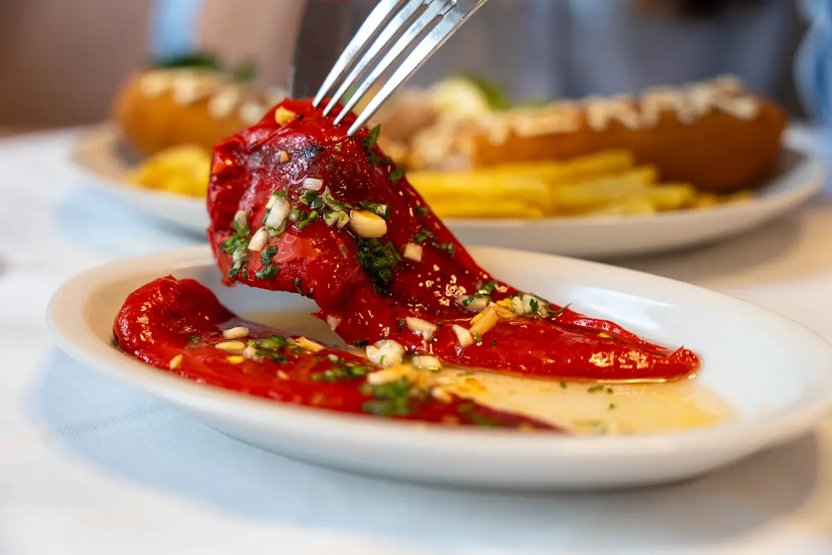 Zarte Paprikastreifen, schonend in Öl gebraten und mit Knoblauch veredelt – ein würziger Klassiker für Genießer.