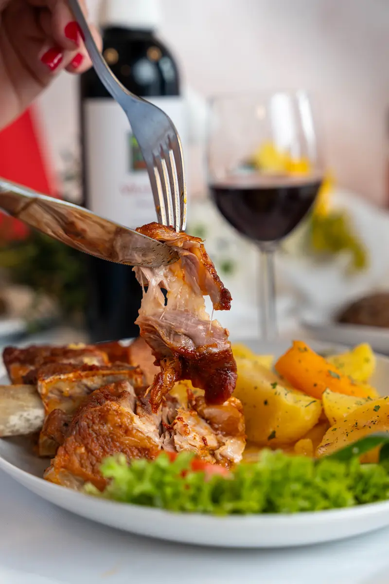 Zartes Kalbfleisch, traditionell unter einer Metallglocke gegart. Saftig, aromatisch und authentisch.